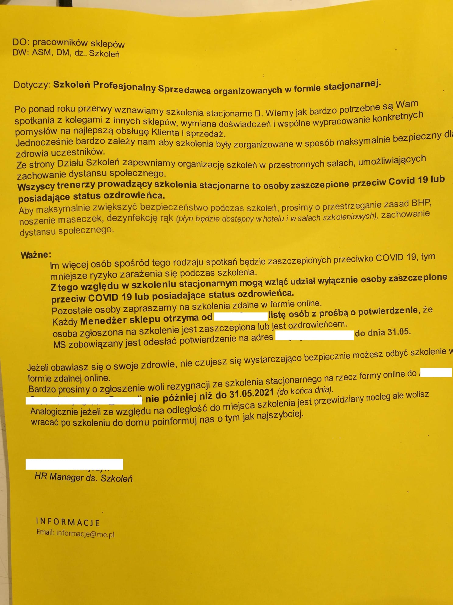 Już oficjalnie rozpoczęła się segregacja osób ze względu na fakt «zaszczepienia» przeciwko COVID‑19 lub odstąpienia od szczepienia. Robią to zarówno firmy, takie jak TERG SA, będące właścicielem sklepu internetowego MediaExpert, jak też lekarze w poradniach NFZ.